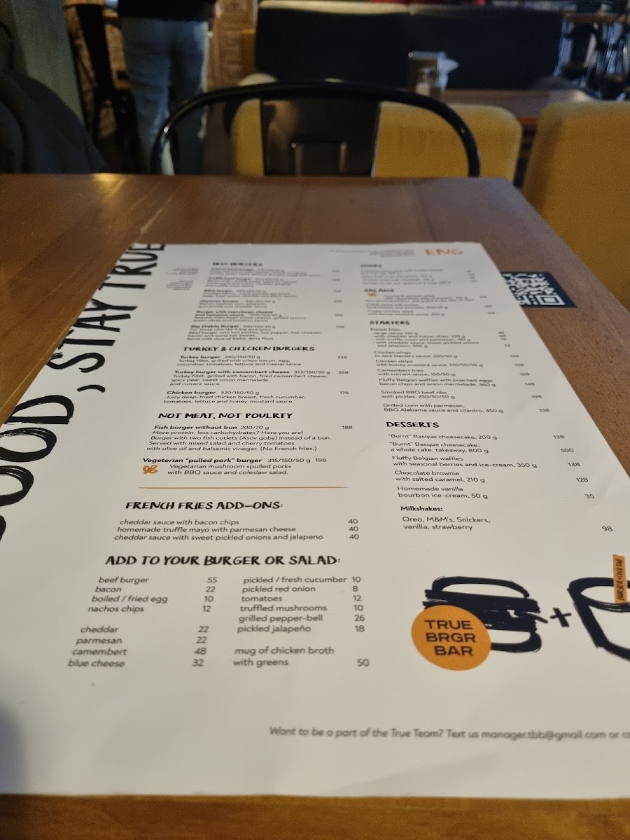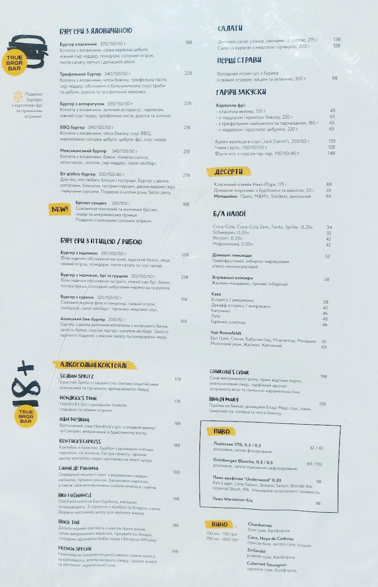 Welcome to True Burger Bar, a culinary gem nestled in the heart of Kyiv on Bohdana Khmel'nyts'koho St. This spot is quickly gaining a reputation for its mouthwatering burgers and inviting atmosphere. The menu boasts an array of options, from classic favorites to specialty creations, with prices ranging from 110 to 300 UAH.